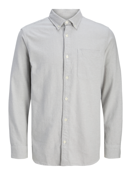 Διαχρονικό ανδρικό πουκάμισο JACK & JONES σε γκρι απόχρωση, από ύφασμα oxford. Διαθέτει γιακά με κουμπιά, τσέπη στο στήθος και κανονική εφαρμογή. Must-have για κάθε εμφάνιση, από casual έως smart casual.