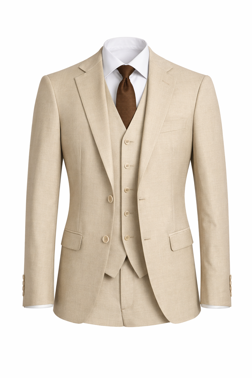 Κομψότητα με καλοκαιρινό χαρακτήρα. Το μπεζ κοστούμι με γιλέκο αποπνέει διακριτική πολυτέλεια και σύγχρονο refined στυλ. Η tailored γραμμή αναδεικνύει τη σιλουέτα, ενώ το γιλέκο προσθέτει βάθος και ολοκληρώνει ένα άψογο, προσεγμένο αποτέλεσμα. Η φυσική μπεζ απόχρωση το καθιστά ιδανικό για καλοκαιρινές περιστάσεις, προσφέροντας μια πιο φωτεινή και σύγχρονη εναλλακτική στο κλασικό σκούρο κοστούμι. Ιδανικό για γάμους, βαπτίσεις και formal εμφανίσεις με πιο relaxed καλοκαιρινό ύφος. Συνδύασέ το με λευκό πουκάμισο και γραβάτα ή φόρεσέ το πιο χαλαρά χωρίς γραβάτα για ένα modern elegant look.