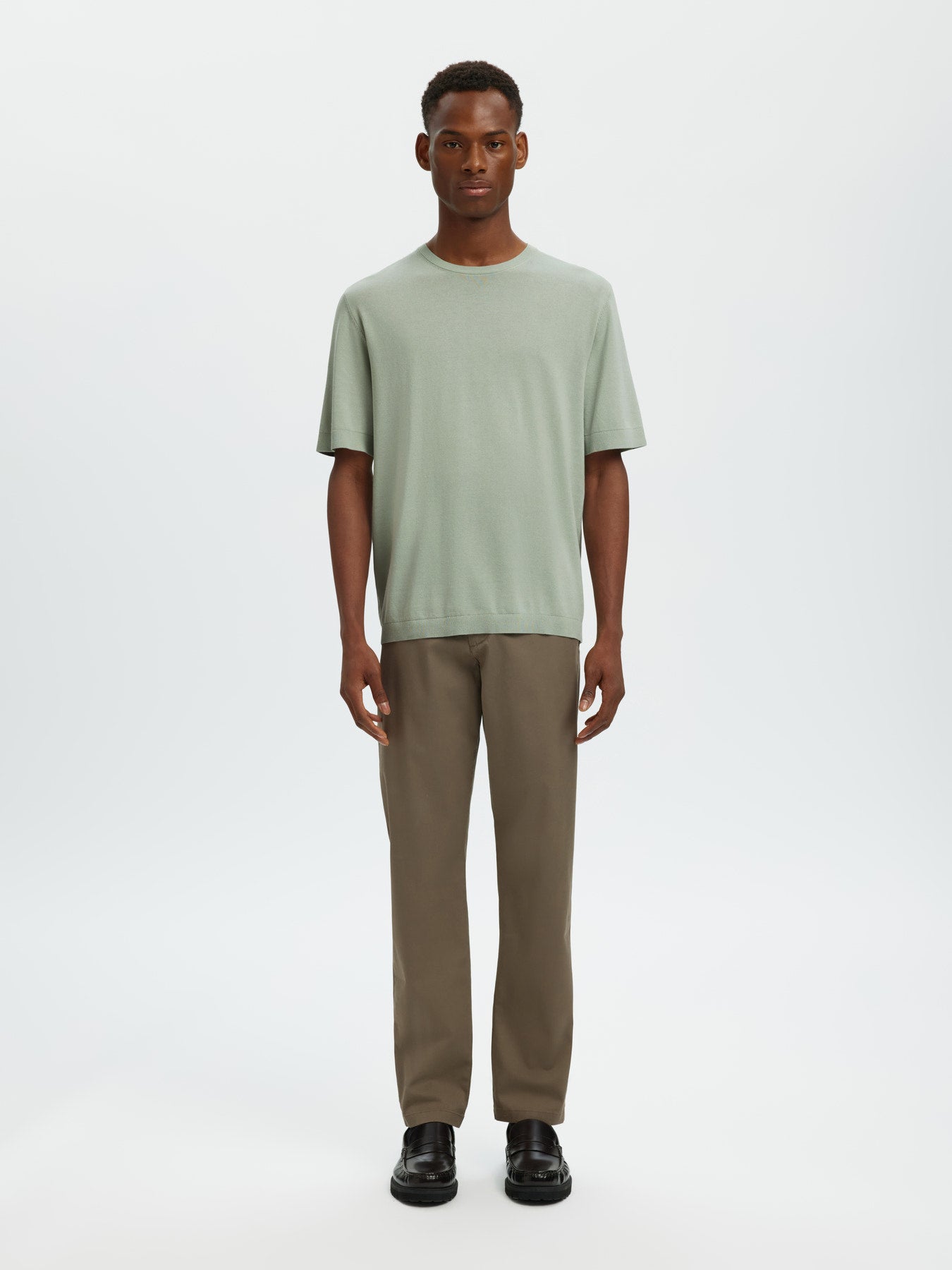 Minimal γραμμή με καθαρές λεπτομέρειες και refined αισθητική. Το πλεκτό T-shirt της Selected Homme σε φυστικι απόχρωση αποπνέει διακριτική πολυτέλεια και σύγχρονο χαρακτήρα. Η απαλή υφή και το φίνο τελείωμα στον λαιμό και στα μανίκια αναδεικνύουν την ποιοτική κατασκευή του, ενώ η ίσια, άνετη εφαρμογή το καθιστά ιδανικό για κομψά καλοκαιρινά σύνολα.