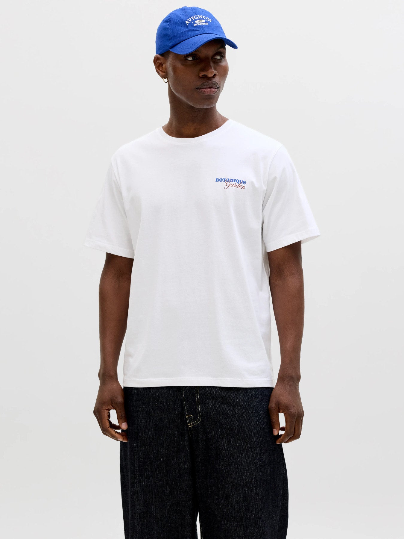 Καθαρό μπροστά, εντυπωσιακό πίσω. Το λευκό t-shirt της Jack & Jones συνδυάζει minimal αισθητική με καλλιτεχνικό χαρακτήρα, δημιουργώντας ένα σύγχρονο summer statement. Η απαλή βαμβακερή υφή του προσφέρει άνεση και δροσερή αίσθηση, ενώ η relaxed γραμμή το καθιστά ιδανικό για καθημερινή χρήση. Το διακριτικό logo στο στήθος κρατά το look minimal, ενώ το εντυπωσιακό botanical print στην πλάτη δίνει ένταση και ξεχωρίζει με στυλ. Συνδύασέ το με denim, chino ή λινό παντελόνι για ένα καθαρό και μοντέρνο καλοκαιρινό outfit.